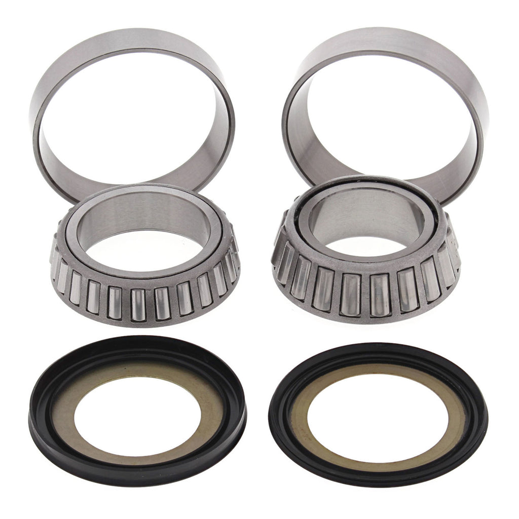 A quality Steering Head Bearing kit from All Balls. Heavy Duty Tapered Roller Bearings manufactured in Japan to exacting specifications so quality and durability is assured.Contains bearings and seals. Make your bike handle like new!