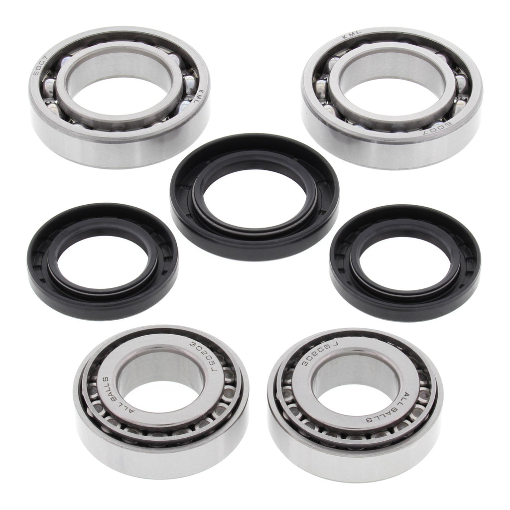 A quality Differential Bearing and Seals Kit from All Balls. Contains Bearings and seals required as per application. Your pinion shaft can be machined and the included repair sleeve installed, saving you hundreds of dollars. Precision high-speed bearings are manufactured to ABEC3 standards. The Seals use double lips to stop dirt entering. Install this kit and enjoy trouble free riding for years to come.