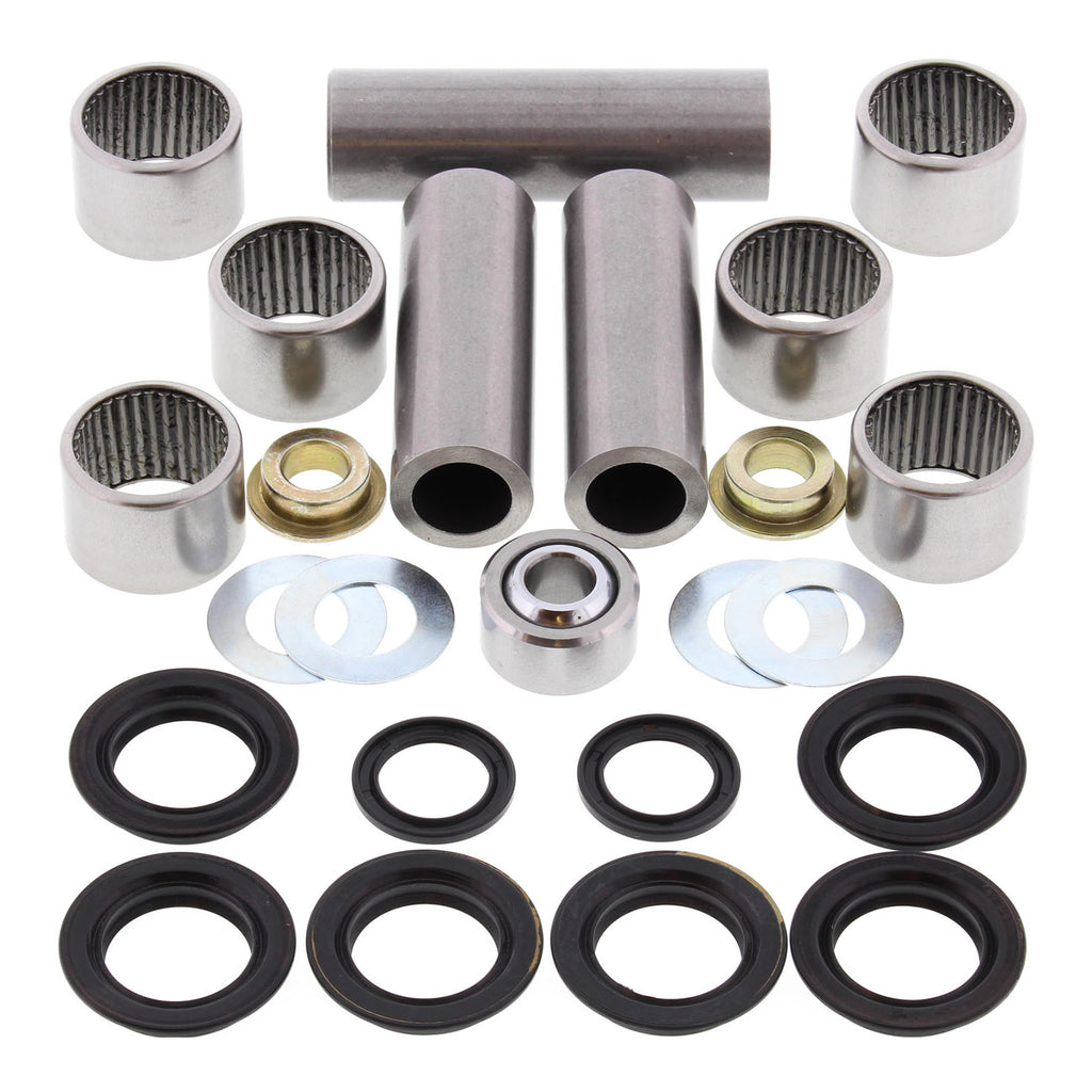 A Quality Suspension Linkage Kit from All Balls Racing. Kit includes lower shock bearing kit! Needle Bearings are made from 52100 bearing steel, ARC61-65 heat treated ST13 steel shell. Bushings are case hardened and plated to prevent wear and corrosion. Shafts are made from 52100 Bearing steel, through hardened and precision ground.
