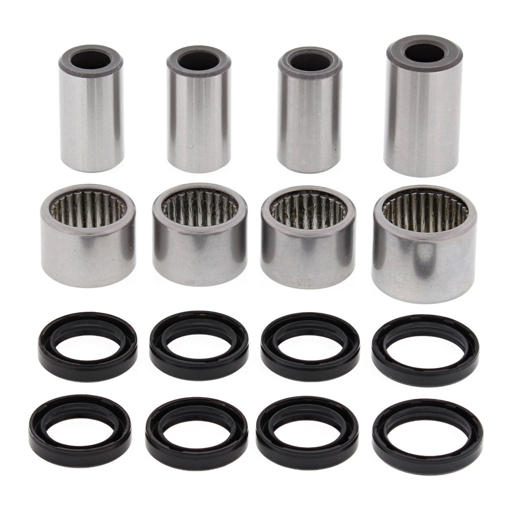 A Quality Suspension Linkage Kit from All Balls Racing. Kit includes lower shock bearing kit! Needle Bearings are made from 52100 bearing steel, ARC61-65 heat treated ST13 steel shell. Bushings are case hardened and plated to prevent wear and corrosion. Shafts are made from 52100 Bearing steel, through hardened and precision ground.