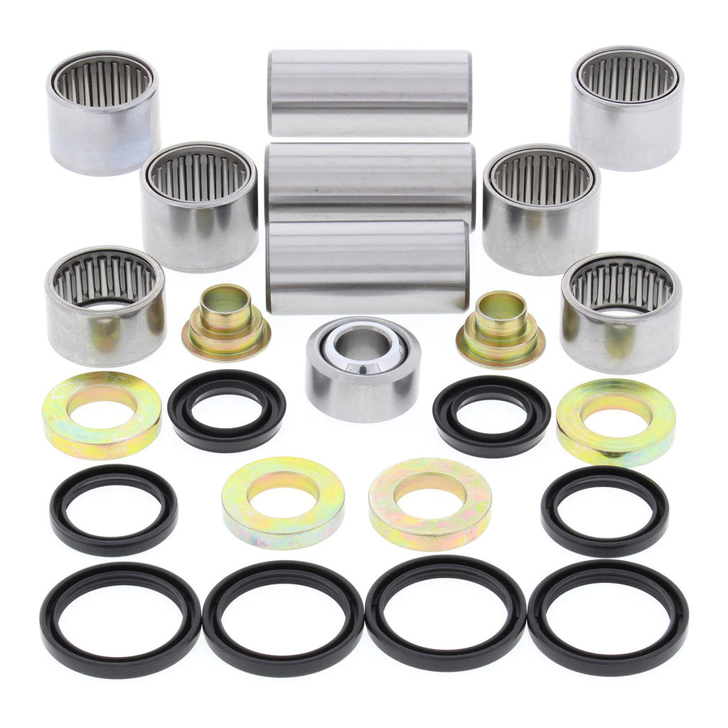 A Quality Suspension Linkage Kit from All Balls Racing. Kit includes lower shock bearing kit! Needle Bearings are made from 52100 bearing steel, ARC61-65 heat treated ST13 steel shell. Bushings are case hardened and plated to prevent wear and corrosion. Shafts are made from 52100 Bearing steel, through hardened and precision ground.