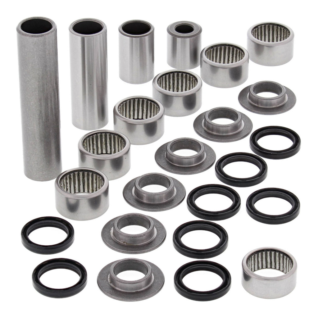A Quality Suspension Linkage Kit from All Balls Racing. Kit includes lower shock bearing kit! Needle Bearings are made from 52100 bearing steel, ARC61-65 heat treated ST13 steel shell. Bushings are case hardened and plated to prevent wear and corrosion. Shafts are made from 52100 Bearing steel, through hardened and precision ground.