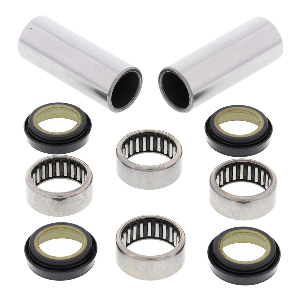 A Quality Swing Arm Repair Kit from All Balls Racing. Bushings are case hardened and plated to prevent wear and corrosion. POM composite washer bearings replace thrust needle washers for susperior resistance to water and dirt and increase service life. Shafts are made from 52100 Bearing steel, through hardened and precision ground. Needle Bearings are made from 52100 bearing steel and ARC61-65 heat treated ST13 steel shell.