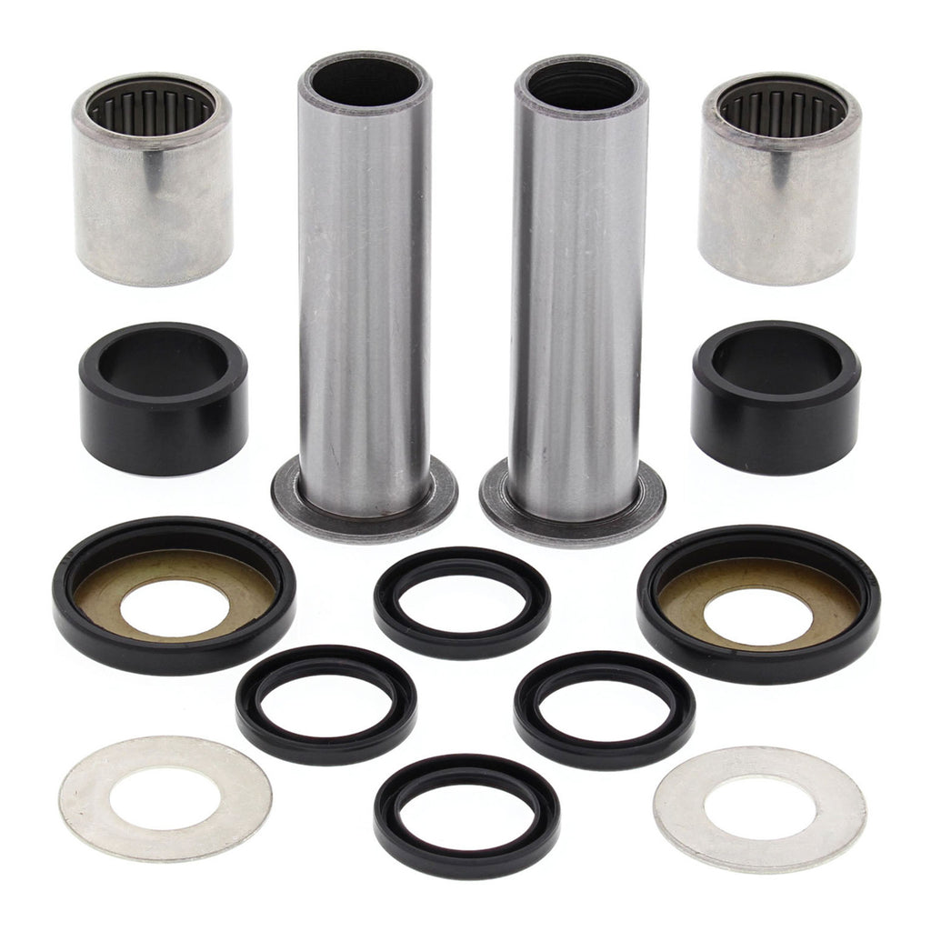 A Quality Swing Arm Repair Kit from All Balls Racing. Bushings are case hardened and plated to prevent wear and corrosion. POM composite washer bearings replace thrust needle washers for susperior resistance to water and dirt and increase service life. Shafts are made from 52100 Bearing steel, through hardened and precision ground. Needle Bearings are made from 52100 bearing steel and ARC61-65 heat treated ST13 steel shell.