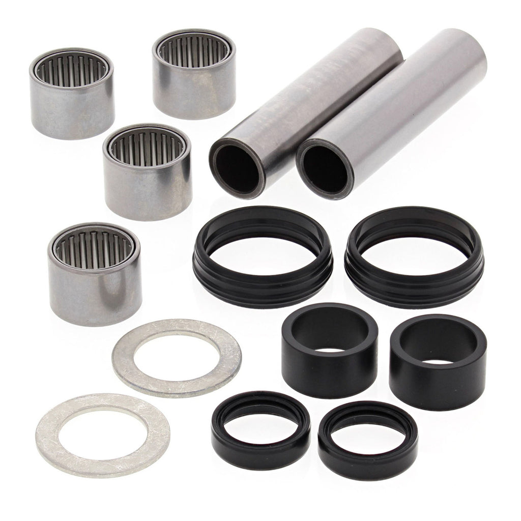 A Quality Swing Arm Repair Kit from All Balls Racing. Bushings are case hardened and plated to prevent wear and corrosion. POM composite washer bearings replace thrust needle washers for susperior resistance to water and dirt and increase service life. Shafts are made from 52100 Bearing steel, through hardened and precision ground. Needle Bearings are made from 52100 bearing steel and ARC61-65 heat treated ST13 steel shell.