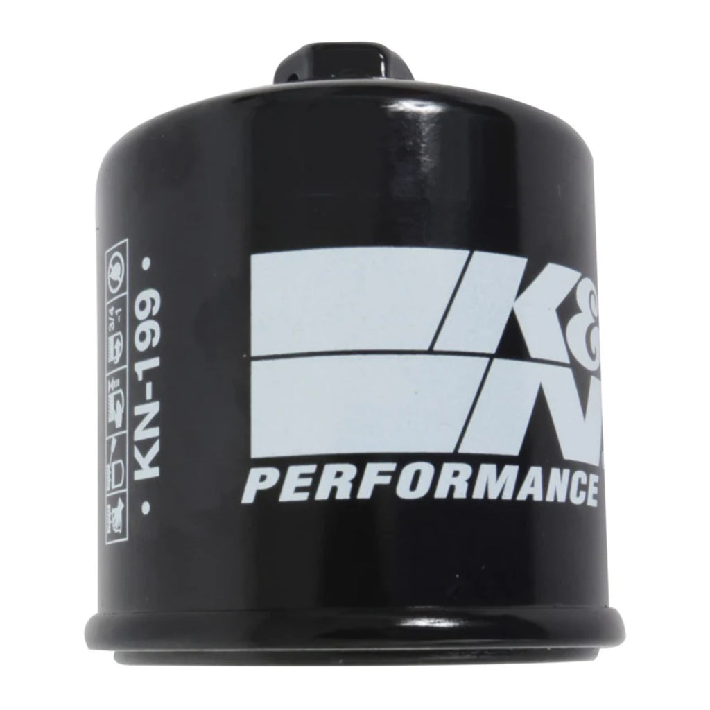K&N Powersports oil filters contain a modern synthetic filter media, designed for ultimate flow with less pressure drop, yet engineered for outstanding filtration. K&N Powersports 'spin-on' oil filters feature a heavy-duty metal can. Most of these have a 17 mm nut affixed to the end that allows for easy removal. The 17 mm nut is crossed-drilled so racers can safety wire the filter to their bike.
