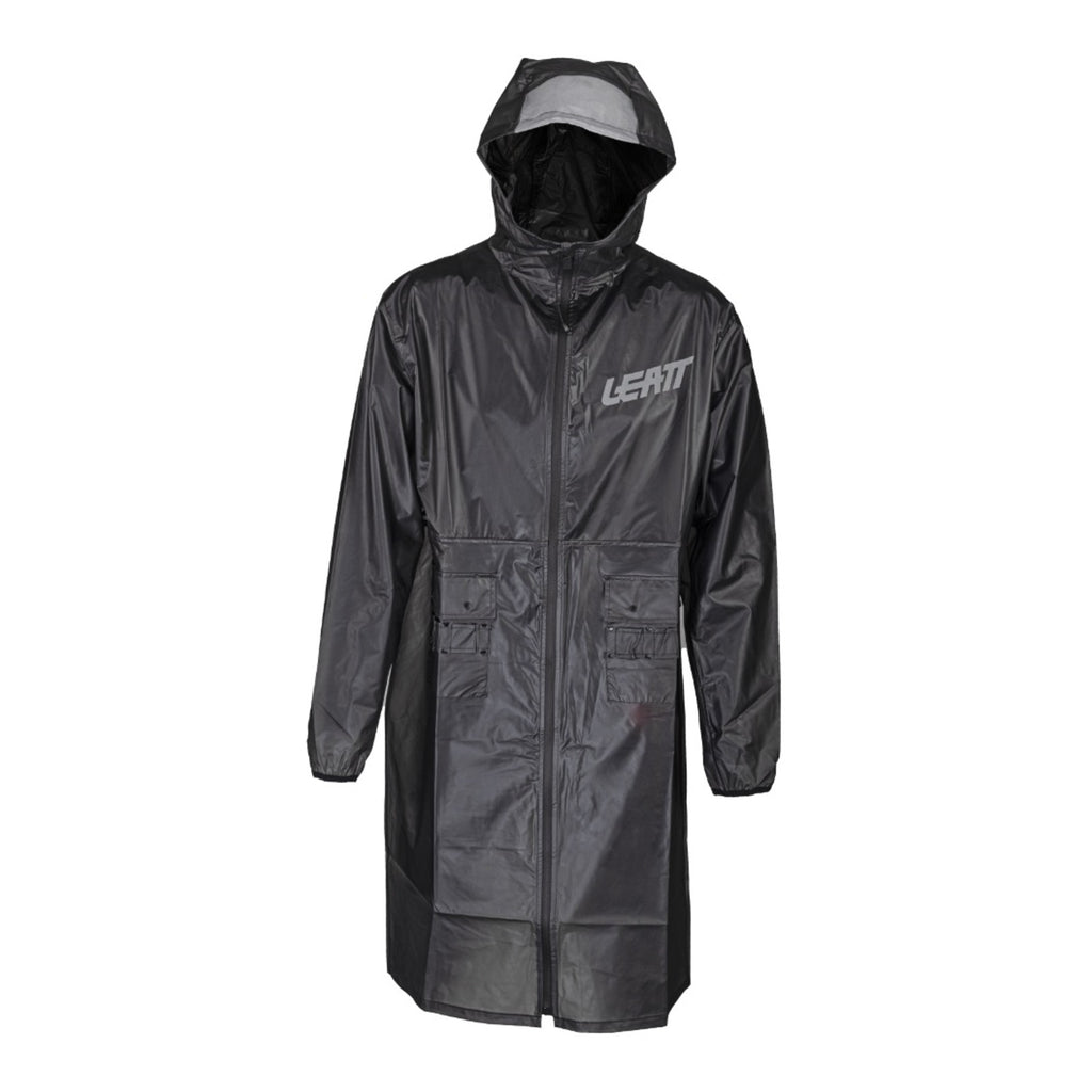 This extra-long coat is made from a soft waterproof material and has pockets on the front as well as loops for holding T-shaped tools.