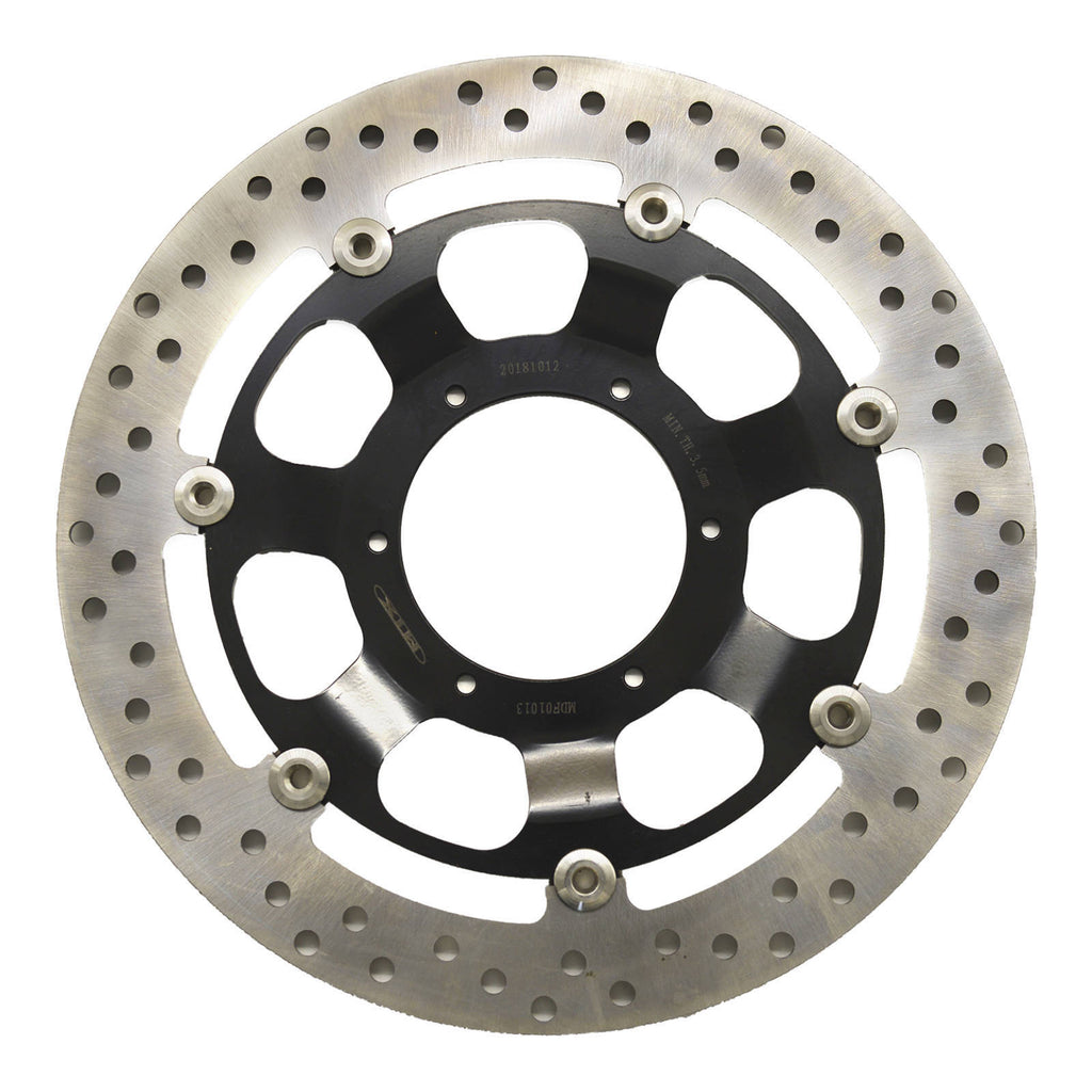 MTX floating discs are made from two segments of stainless steel which are riveted together to allow the outer section of stainless steel to expand under extreme temperatures. The outer section is manufactured from Japanese SUS 420 stainless steel, then heat-treated to HRC 36+-2 while the centre of the disc is manufactured from steel or alloy. An alternative to large original discs, floating discs improve braking performance by ensuring the disc is always in perfect alignment with your pads for the perfect contact throughout all operating temperatures. Lightening and drill holes are designed to improve braking performance and reduce the disc temperature.