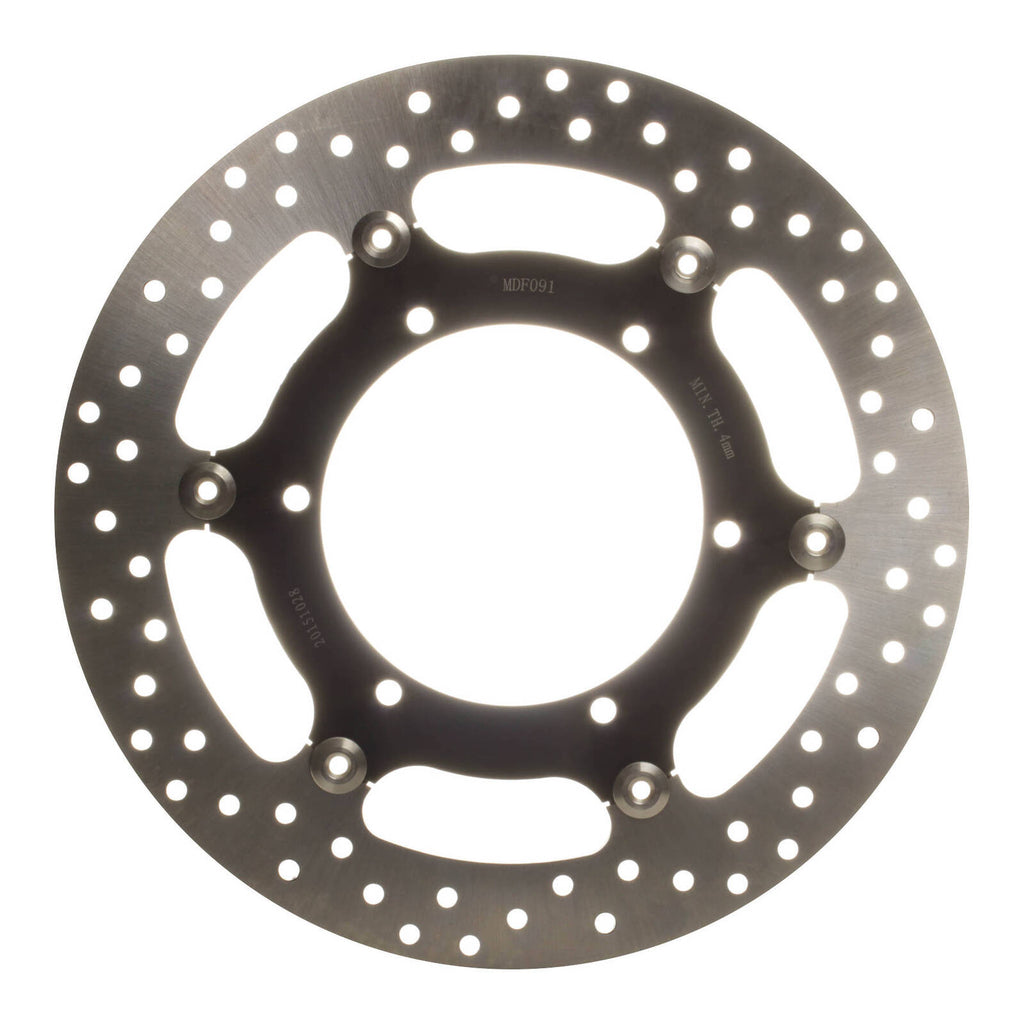 MTX floating discs are made from two segments of stainless steel which are riveted together to allow the outer section of stainless steel to expand under extreme temperatures. The outer section is manufactured from Japanese SUS 420 stainless steel, then heat-treated to HRC 36+-2 while the centre of the disc is manufactured from steel or alloy. An alternative to large original discs, floating discs improve braking performance by ensuring the disc is always in perfect alignment with your pads for the perfect contact throughout all operating temperatures. Lightening and drill holes are designed to improve braking performance and reduce the disc temperature.