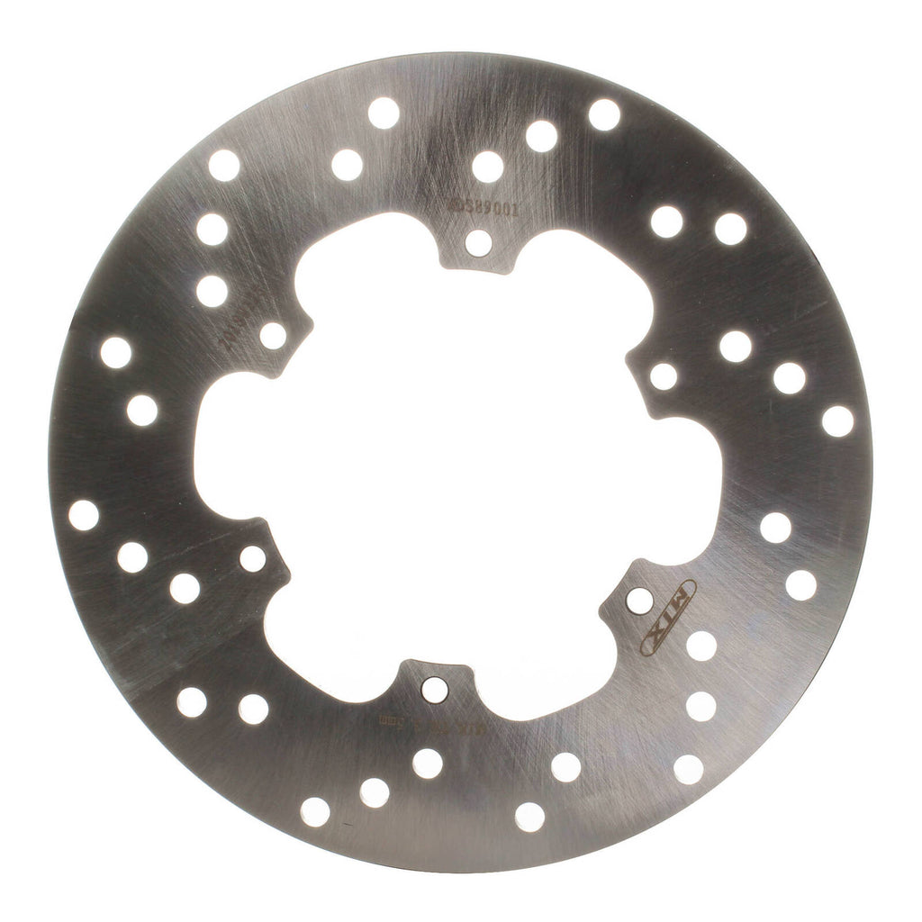MTX solid discs are constructed using one complete segment of Japanese SUS 420 stainless steel, then heat-treated to HRC 36+-2. Lightening and drill hole patterns are as per OEM designs to improve braking performance and reduce the temperature of the disc.