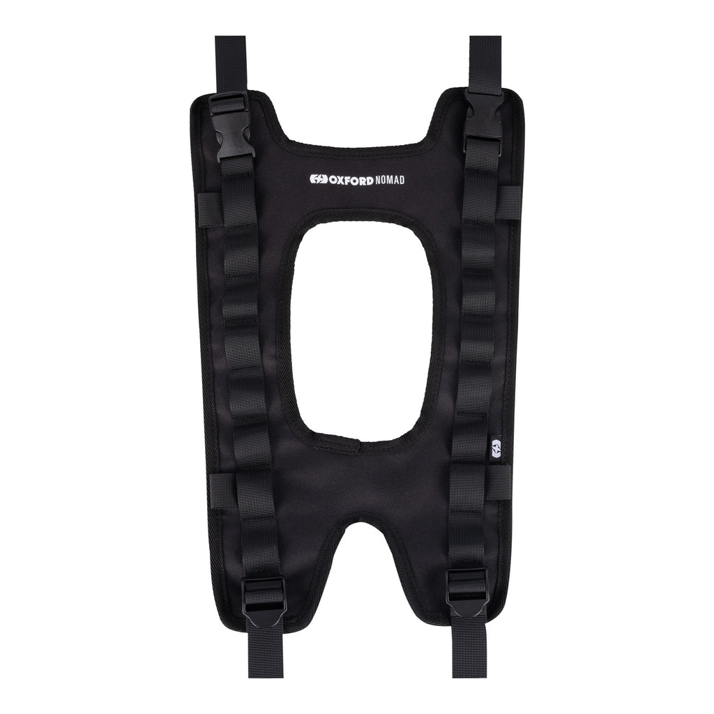 The Oxford Nomad Tank Harness is a universal tank-mounted base for attaching luggage accessories. Designed to surround the fuel cap, it is not necessary to remove whilst refuelling.