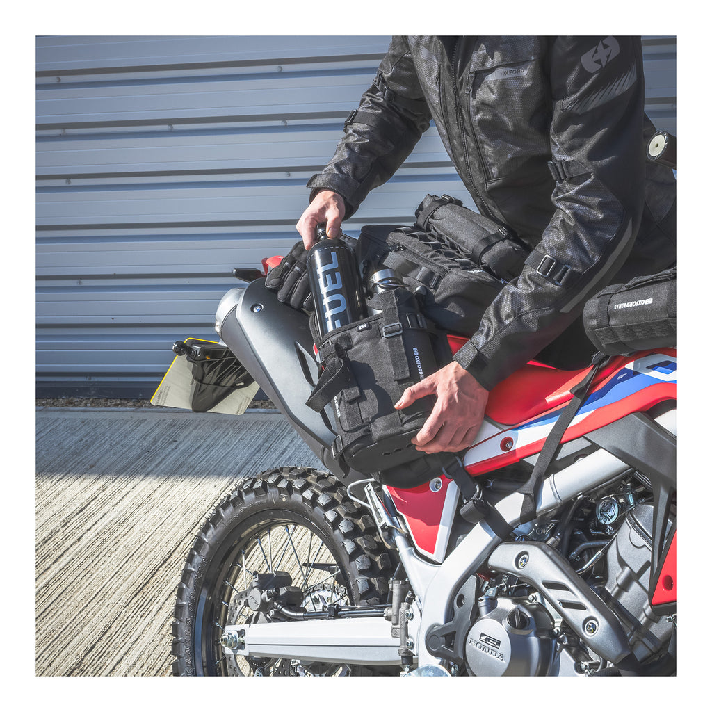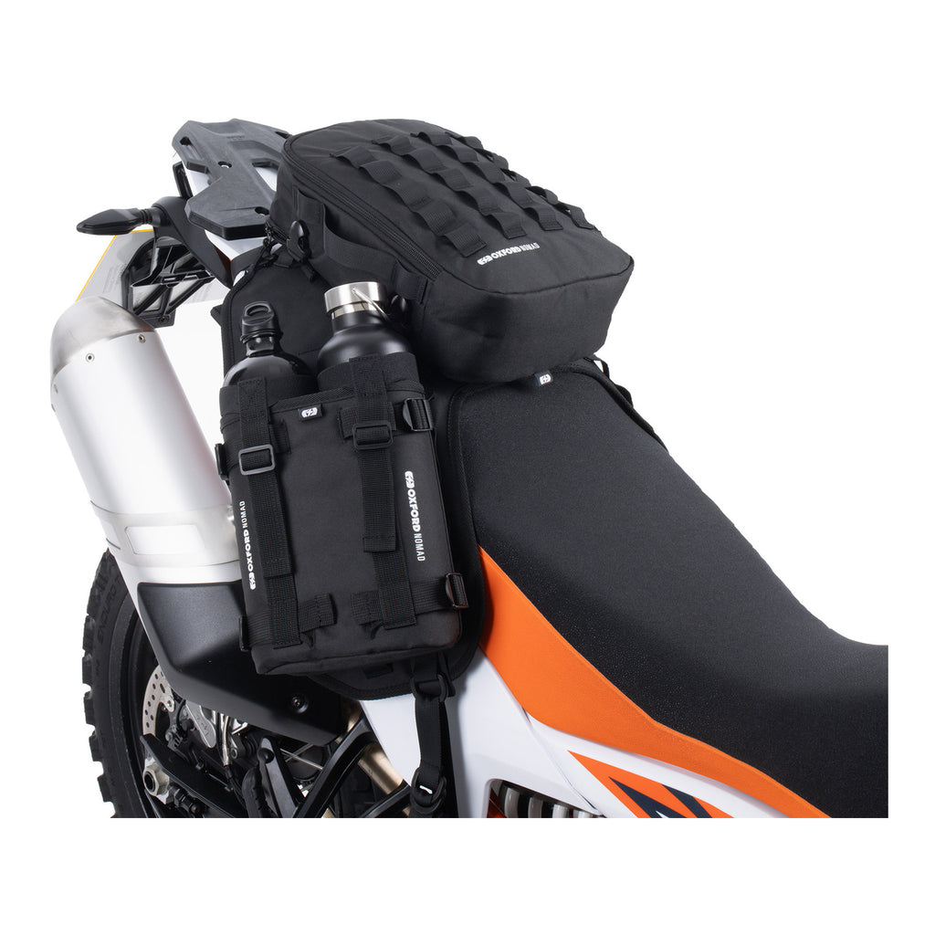 The Oxford Nomad Bottlestash XL is designed to carry two containers; both the Oxford Fuel Flask and the Oxford Aqua Insulated Flask.