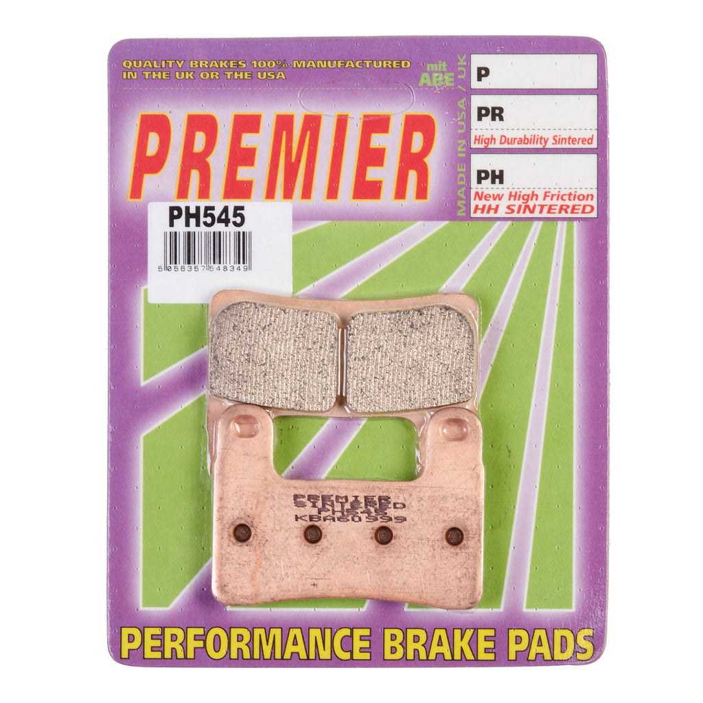High performance HH friction rated sintered metal pads made in the USA to an exclusive Premier formulation. The "PH" brake pads offer maximum durability and unbeatable performance under heavy braking and high speed use.