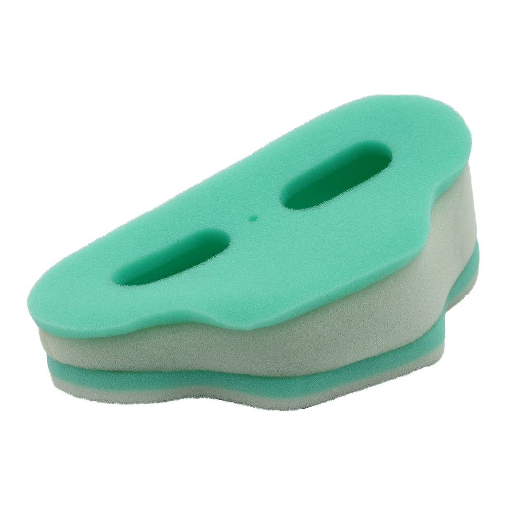 2. Fine open-pore inner foam acts as a second filter to trap the smallest particles while ensuring maximum air passage.