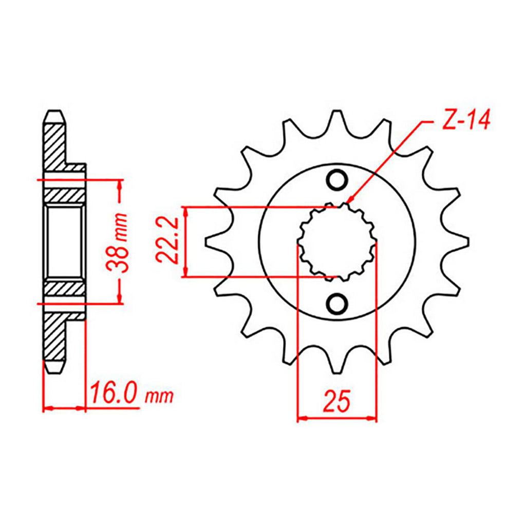 MTX OE Steel sprockets are strong and durable, heat-treated and hand-finished for longevity. Front sprockets are constructed from SCM420 chromoly steel alloy where rear sprockets are constructed from C45 high carbon steel with a Zinc electroplated finish. Designed as an OEM replacement to exceed OEM specifications at a fraction of the price, making them your ideal cost-effective solution for replacing old worn and warped sprockets.