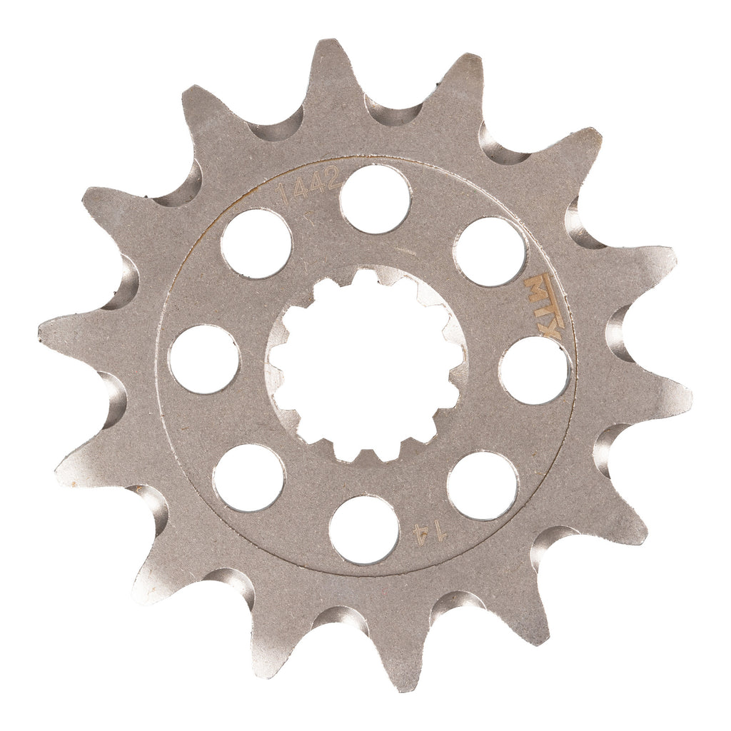 MTX Hornet front sprockets are a lightweight performance alternative to OEM sprockets. Featuring self-cleaning mud grooves between the teeth for extended chain and sprocket life, with lightening holes to reduce rotational mass the Hornet series is designed for champions. CNC machined from case-hardened Chromoly steel and fully heat-treated for maximum strength and durability.