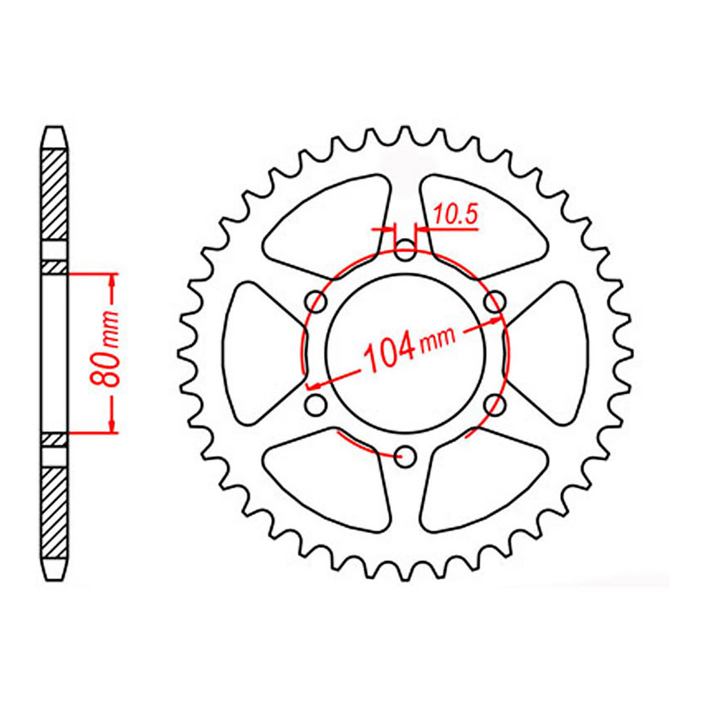 MTX OE Steel sprockets are strong and durable, heat-treated and hand-finished for longevity. Front sprockets are constructed from SCM420 chromoly steel alloy where rear sprockets are constructed from C45 high carbon steel with a Zinc electroplated finish. Designed as an OEM replacement to exceed OEM specifications at a fraction of the price, making them your ideal cost-effective solution for replacing old worn and warped sprockets.
