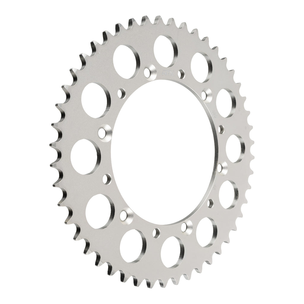MTX OE Steel sprockets are strong and durable, heat-treated and hand-finished for longevity. Front sprockets are constructed from SCM420 chromoly steel alloy where rear sprockets are constructed from C45 high carbon steel with a Zinc electroplated finish. Designed as an OEM replacement to exceed OEM specifications at a fraction of the price, making them your ideal cost-effective solution for replacing old worn and warped sprockets.