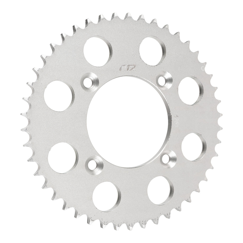 MTX OE Steel sprockets are strong and durable, heat-treated and hand-finished for longevity. Front sprockets are constructed from SCM420 chromoly steel alloy where rear sprockets are constructed from C45 high carbon steel with a Zinc electroplated finish. Designed as an OEM replacement to exceed OEM specifications at a fraction of the price, making them your ideal cost-effective solution for replacing old worn and warped sprockets.
